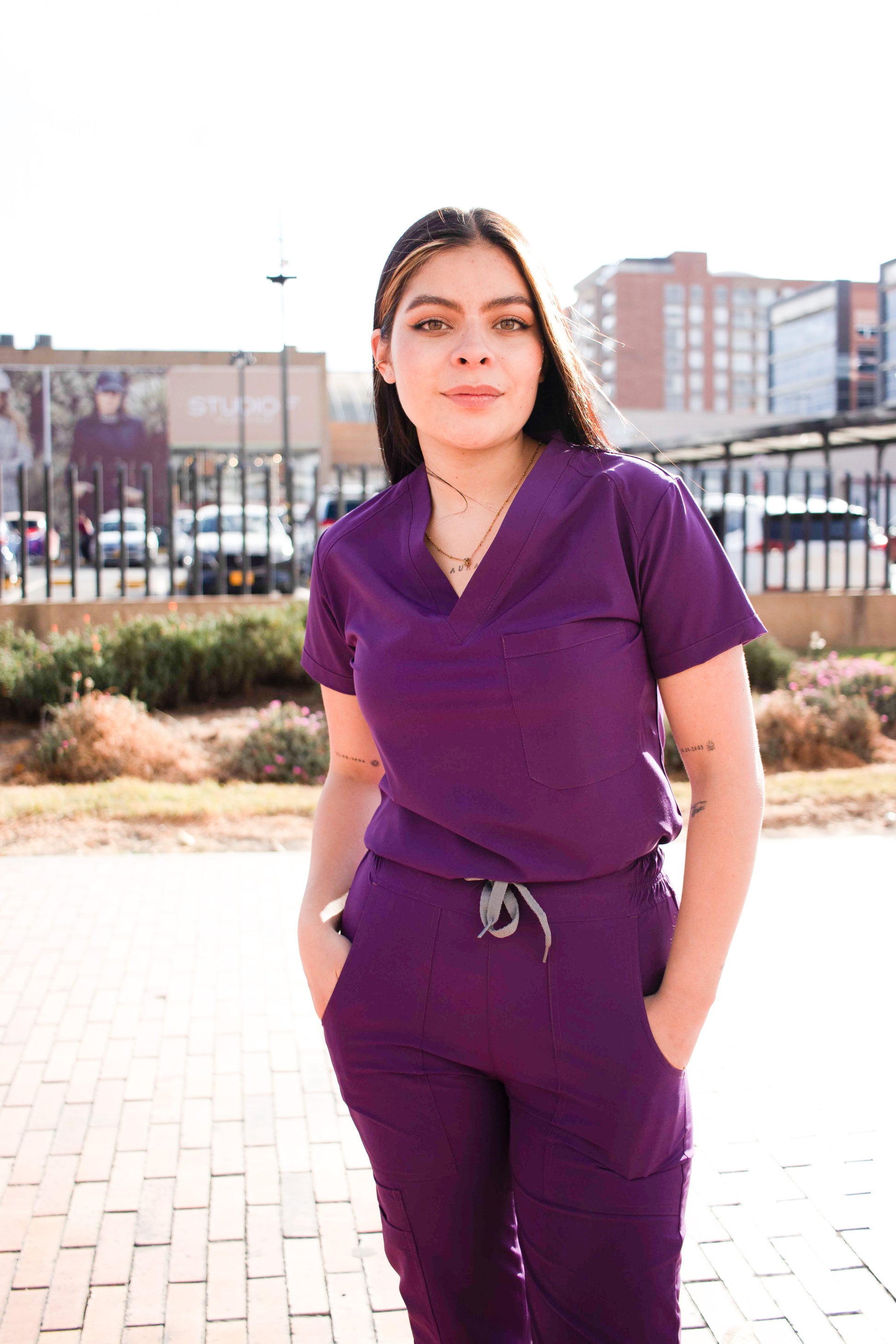 Natalia Medical Scrubs are expertly designed for women seeking both functionality and comfort. Crafted from a durable 88% polyester and 12% spandex stretch fabric, these scrubs resist tears, chlorine, and fluids while remaining breathable and easy to maintain. The top features three reinforced front pockets ideal for holding IDs, dosimeters, or other essentials, while the pants offer six reinforced pockets with a secure drawstring for a perfect fit. Tailored to flatter the female silhouette, these scrubs provide reliable performance throughout demanding medical or dental shifts.